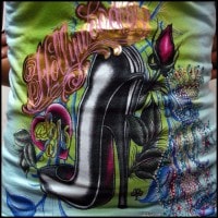 商品名 : Christian Audigier クリスチャンオードジェー レディース Tシャツ HOLLYWOOD HEEL ブルー LAセレブ ファッション ハリウッド セレブ カジュアル セレカジ 正規品 姉妹 ブランド エドハーディー Ed Hardy エドハーディ 好きにも♪