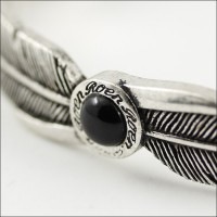 商品名 : 【即納】Roen BLACK ロエン ブラック フェザー バングル ブレスレット オニキス シルバー ストーン RO-301 RoenBLACK ロエンブラック 天然石 アクセサリー アクセサリー ジュエリー ブランド アクセ メンズ レディース 男女兼用 ユニセックス