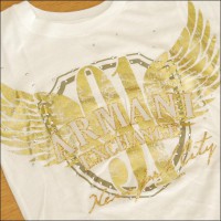 商品名 : A|X Armani Exchange アルマーニエクスチェンジ レディース 半袖 スタッズ Tシャツ ロング丈 ホワイト ゴールド トップス アメカジ サーフ セレカジ インポート カジュアル スタイル ファッション