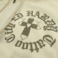 商品名 : エドハーディー レディース 長袖 パイル セットアップ Ed Hardy CROSS ホワイト エド・ハーディー 正規品 海外 LAセレブ 着用 サファリ ファッション 雑誌 掲載 ブランド クリスチャン オードジェー ロック サーフ スタイル