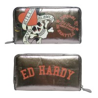 商品名 : 【訳あり・アウトレット】Ed Hardy エドハーディー 合皮 長財布 ジップ ラウンドファスナー メタリック ラブキル 小物 雑貨 インポート ファッション ブランド アメカジ セレカジ 雑誌 掲載 ハリウッド セレブ スタイル 正規 商品 セール