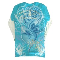 商品名 : 【セール】 クリスチャンオードジェー メンズ 長袖 レイヤード ロンT Christian Audigier ROSES アクア ブルー Tシャツ ハリウッド LAセレブ ファッション セレブ カジュアル セレカジ 正規品 エドハーディー Ed Hardy 姉妹ブランド ストリート ロック スタイル ブランド