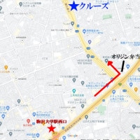 →初めの交差点(上馬交差点)にオリジン弁当があります。その交差点を左折します。(ここまで約5から7分)