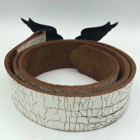 レザーベルト表面のホワイトカラーにヴィンテージ加工を施しているため、一点づつ風合いが異なります。