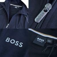 HUGO BOSS ヒューゴボス メンズ スウェット セットアップ ロゴ刺繍 ブラック 1ポイント ロゴ 上下セット MIX MATCH SETUP ストレッチ ジャージー シンプル 高級 ビジネス カジュアル ブランド インナー ギフト プレゼント 父の日 S M L XL 2XL XXL ■ ブランド説明 1924年にドイツで創業した「HUGO BOSS(ヒューゴボス)」は、世界中で愛されるラグジュアリーファッションブランドです。 上質な素材と精緻な仕立てによるエレガントなスタイルは、ビジネスからカジュアルまで幅広いシーンで高い評価を得ています。 シンプルながらも存在感のあるデザインと、快適な着心地を両立させたアイテムを展開し、現代の大人の男性にふさわしいスタンダードを提案しています。 ■ 商品説明 上質なリラックススタイルを叶える、BOSS(ヒューゴ・ボス)MIX & MATCH セットアップ。心地よいストレッチコットン素材を使用し、軽やかな着心地と上品なシルエットを両立しました。ジャケットはレギュラーフィットのジップネック仕様で、カンガルーポケットとロゴ刺繍、コントラストの効いたパイピングがアクセント。パンツはドローコード付きのウエストと裾のカフデザインで、動きやすさと快適さを追求しています。どちらも部分的にオーガニックコットンを使用し、環境にも配慮。 タウンユースからリラックスタイムまで、洗練された大人のオフスタイルを演出するセットアップです。 素材:コットン95%、エラスタン5% スタイル:ジャケット MIX&MATCH JACKET/パンツ MIX&MATCH PANTS 【サイズ(平置きcm)】こちらの商品はラグラン袖の為、袖丈は脇下縫い目から袖先の計測です。 【Sサイズ】 トップス/着丈64cm/身幅50cm/袖丈48cm パンツ/ウエスト74〜90cm(ゴム伸縮)股上31cm/股下76cm/ワタリ30cm/裾幅11cm 【Mサイズ】 トップス/着丈67cm/身幅53cm/袖丈51cm パンツ/ウエスト78〜100cm(ゴム伸縮)股上32cm/股下76cm/ワタリ32cm/裾幅12cm 【Lサイズ】 トップス/着丈69cm/身幅57cm/袖丈52cm パンツ/ウエスト80〜106cm(ゴム伸縮)股上33cm/股下76cm/ワタリ32cm/裾幅12cm 【XLサイズ】 トップス/着丈71cm/身幅60cm/袖丈52cm パンツ/ウエスト86〜112cm(ゴム伸縮)股上34cm/股下76cm/ワタリ33cm/裾幅13cm 【XXLサイズ】 トップス/着丈73cm/身幅62cm/袖丈53cm パンツ/ウエスト90〜120cm(ゴム伸縮)股上36cm/股下76cm/ワタリ35cm/裾幅13cm ■ご購入にあたって ・商品によって多少のサイズの誤差はございます ・画面上と実物では多少色具合が異なって見える場合もございますが、ご了承ください ・ブランドによって、ヴィンテージ加工、ダメージ加工などが施されている商品もございますが、全て新品未使用の商品です。 ・お客様都合による返品、交換はお受けできません。