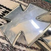 現品限り アウトレット LOWRIDER アイアンクロスミラー クローム 2個セット 若干の小傷があります。ミラー面の保護シートは剥がしていません。 CRUE'S GARAGE SALE(クルーズ ガレージセール) このカテゴリー内の商品は、展示品や訳あり品などになります。 経年劣化やサビ、傷、ヘコミなどがある商品を一点ずつご紹介しております。 ノークレーム・ノーリターンでのご購入をお願いしております。 ご不明な点はご購入前にお問い合わせ下さい。
