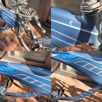 ※カスタムフレームはシートチューブ(カット)、ダウンチューブ(カット後溶接)、ヘッドチューブ(カット後、角度を寝かせて溶接)にカスタムを施しています。実際に走行しながらの撮影や走行に問題はありませんでしたが、★展示車★としてご利用下さい。実際に街乗りを希望の場合は★フレーム変更★して下さい。